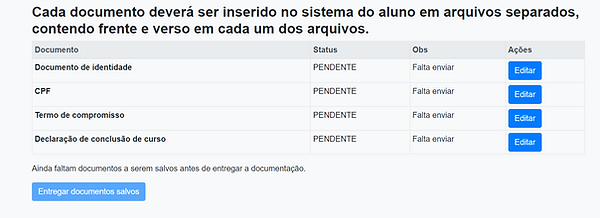 Depois de realizar o upload, certifique-se que todos os documentos foram enviados clicando em "Entregar documentos salvos".
